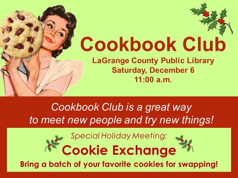 The library will be closed on the fourth Saturday of December, so instead of our usual meeting, we’ll have a cookie exchange.